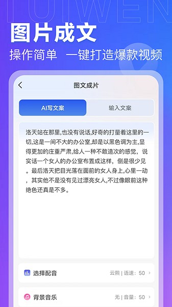 3、图文成片功能让用户可以轻松输入文字,瞬间转换成精美视频,告别繁琐的视频制作流程。