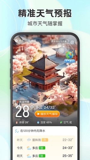 妙雨天气是一款专为安卓用户设计的天气预报应用,通过先进的气象数据技术和算法,为用户提供准确、全面、实用的天气预报信息。旨在帮助用户更好地适应和应对各种天气条件,确保任何天气下的最佳准备和旅行状态,可以满足用户多样化的天气预报需求,为用户提供准确可靠的天气信息,无论是计划户外活动还是为未来几周的天气变化做准备,妙语天气都是用户的理想选择,有需要的用户直接下载就可以开始体验了。