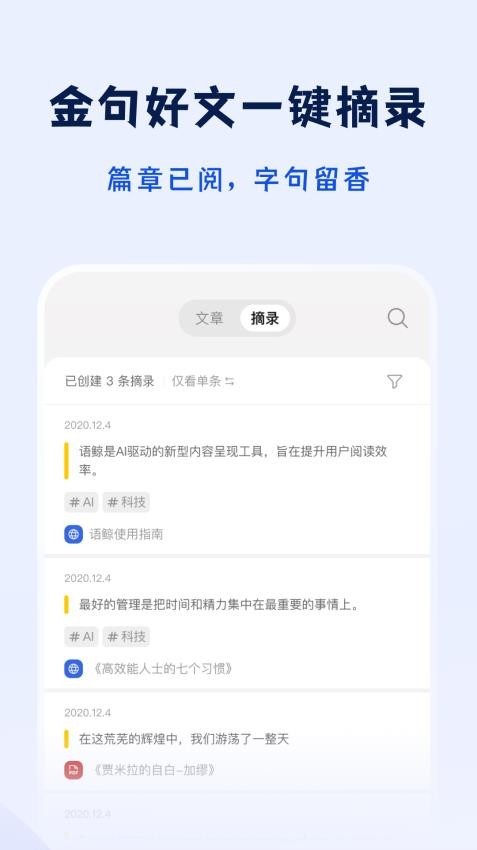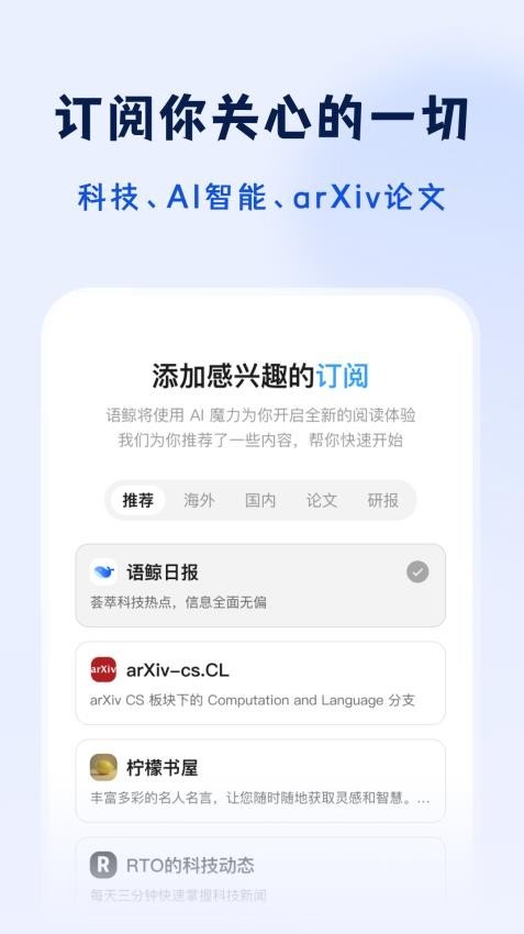 语鲸集成了RSS阅读器和文章摘要功能。 用户可以订阅自己感兴趣的RSS源,获取文章摘要内容。