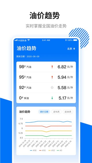 4、油价走势:提供油价变化趋势图以及下次调整日期预览,帮助车主合理安排加油时间。