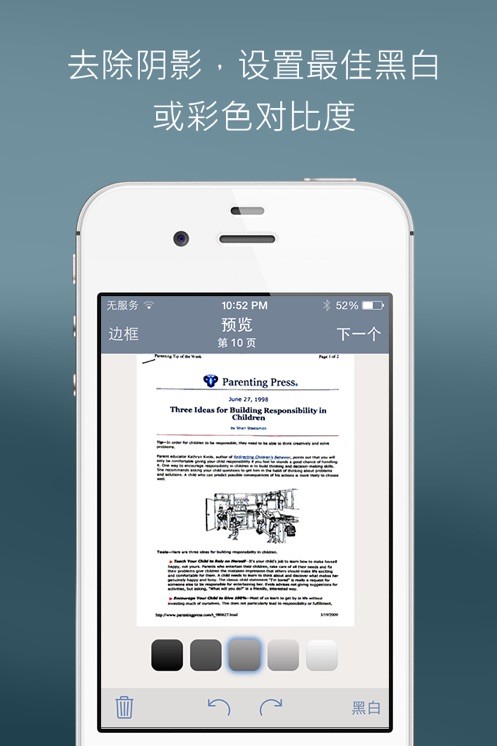 4、使用先进的算法来准确检测文稿边缘、校正文档视角、消除阴影,并为黑白文本设置完美对比度。