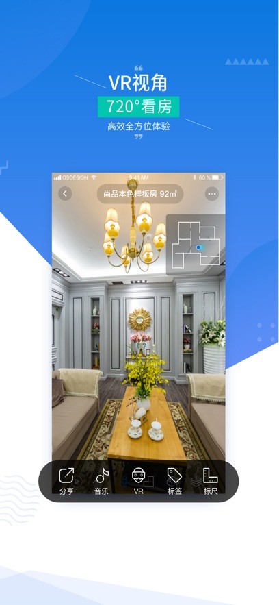 1、强大的实景空间建模工具,通过先进的VR技术,为用户提供真实的户型体验。