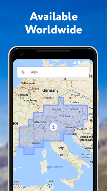 离线地图不会占用太多设备空间,例如阿尔卑斯山的徒步区域仅需要约1GB的手机空间。