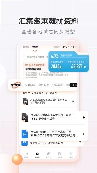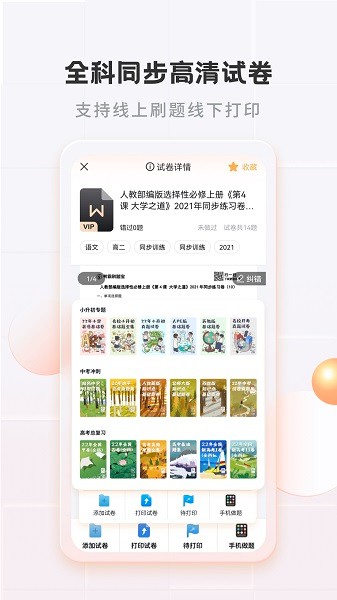 多省、九科、小初高学段,汇集万份精选试卷,支持一键导出打印,高清试卷清晰解析,更支持线上刷题,每天一份,考试冲刺拿下高分不是问题。