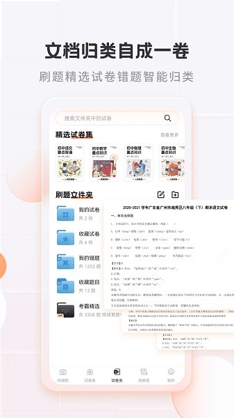 文档归类,试卷整理,一键完成;错题本+刷题宝的合拍联动:拍照错题+刷题分卷+全套打印+教材同步+考试真题+智能组卷......+n= 考霸错题本。