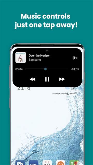 DynamicSpot可以让用户在Android手机上体验类似于苹果智能岛的功能,包括在屏幕的打孔区域显示歌曲播放控件、计时器、电池状态和其他信息。