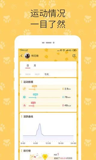 4、数据清晰:所有运动数据清晰展示在平台上,让宠物主人更好的查看和管理。