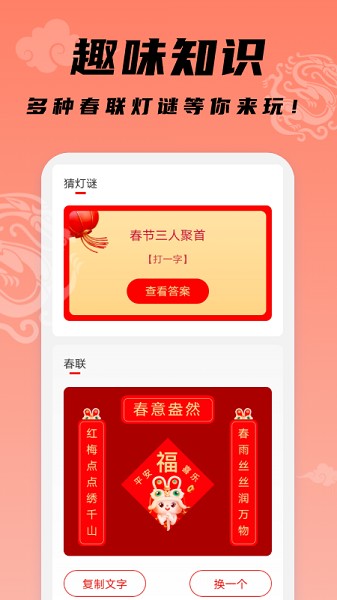 4、提供了一些独特的附加功能,如美食随机决定和精美好看的春联欣赏,增加了应用的趣味性和实用性了。