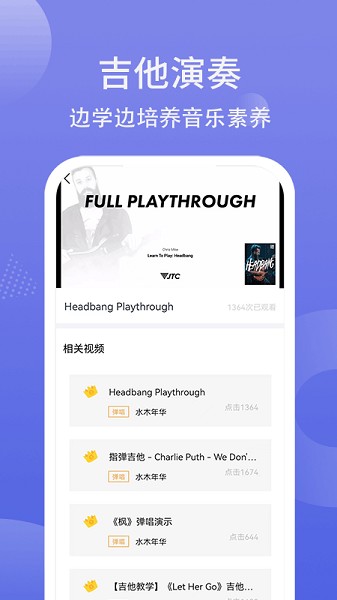 1、在这里可以由浅入深学习吉他,帮助零基础的吉他爱好者轻松入门,系统地学习吉他弹奏知识。