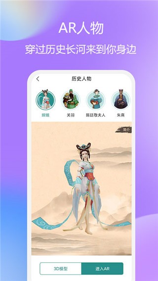 1、AR虚拟导游:软件通过还原历史人物,提供专属导游服务。 用户扫描相应景点的场景,就会出现3D虚拟导游进行讲解,让旅行更加直观生动。
