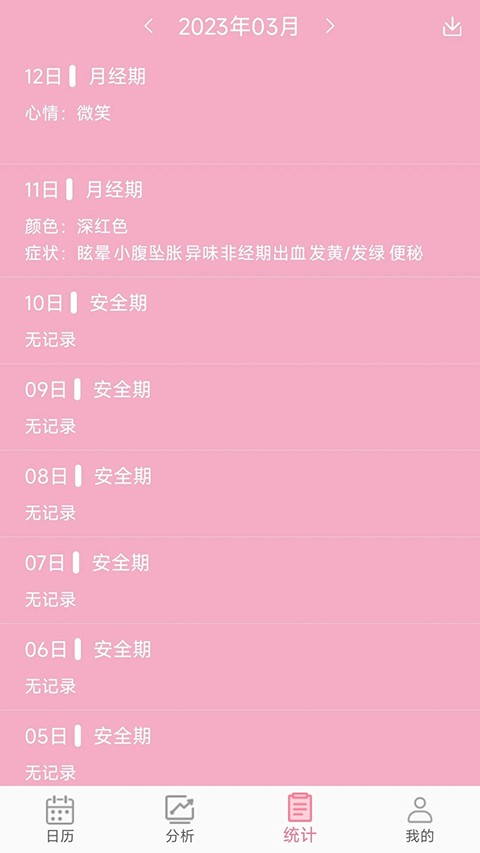 4、数据分析:软件可以对用户输入的数据进行分析,生成周期图、症状趋势图等,帮助用户更直观地了解自己的生理状况,预测未来的周期和症状。