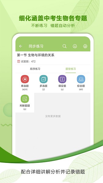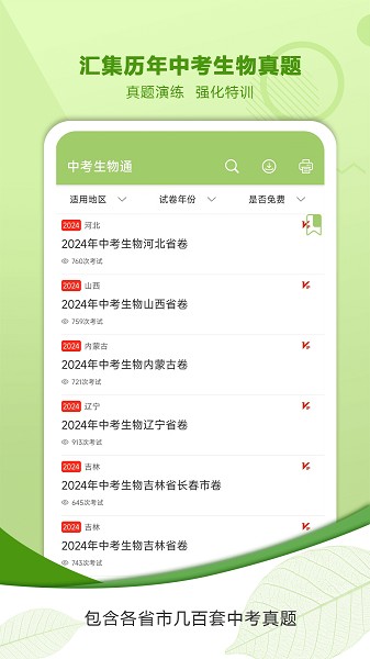 包含全国大部分省市上千套中考生物真题,每一道题目都有详细的讲解分析,错题自动分析。