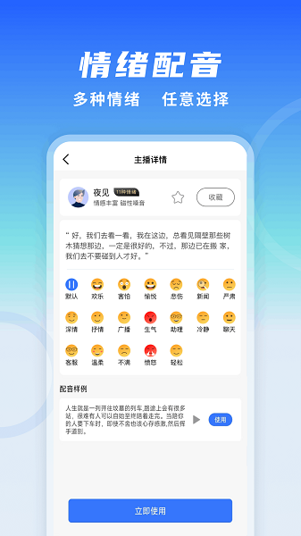 3、集成了超过100位发音人的声音库,通过高精度的算法模拟真人发音,能准确地表达不同的情绪。