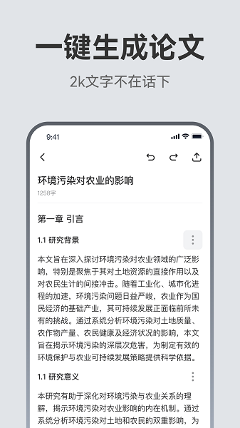 1、用户只需输入关键词和主题,自动生成符合学术规范的论文结构,涵盖从标题到参考文献的完整框架。