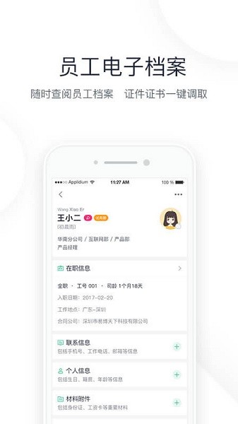 1、专为中小微企业设计的在线人力资源SaaS管理工具,优化HR常规事务,移动办公很方便。