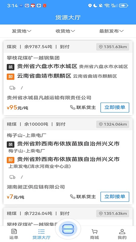 在货源大厅中将全部的货源信息进行了集中管理,及时查看全部信息。