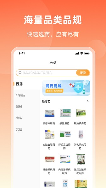 润药商城app为大家带来了一站式的医药采购平台,能够根据自己的需求分类进行筛选,还可以直接输入关键词进行搜索,所有的药品都是经过验证的,让大家可以安心的进行采购,需要采购的药品都可以进行一键加购了。