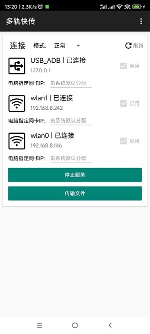 1、突破了传统单一网络接口的限制,支持同时使用USB和Wi-Fi等多张网卡进行文件传输。