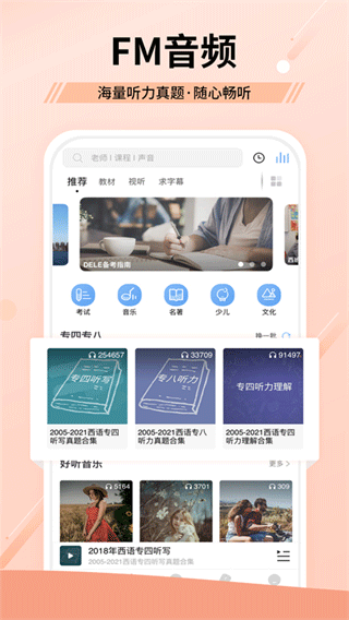 2、FM音频:有FM部分,具有音频和文字同步功能,可以锻炼阅读能力,提高口语水平。该版块内容丰富,涵盖多种听力材料,如官方新闻、商务法语、真题考试材料等,甚至还有动画、电影内容,满足不同的学习需求。