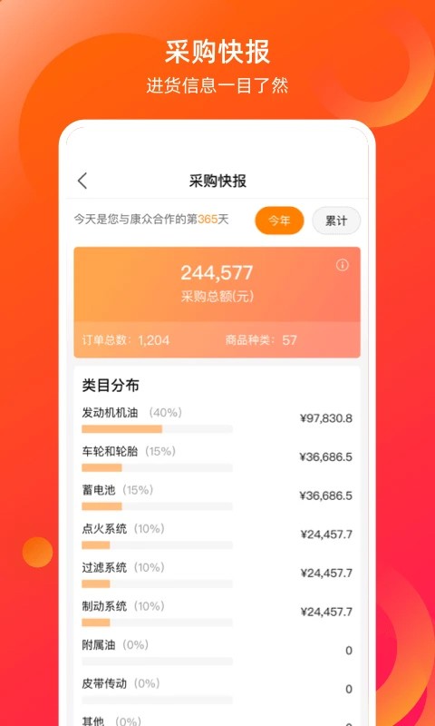 软件涵盖油品、轮胎、易损件、工具辅助材料、化工养护等多个品类,满足用户全方位的汽配需求。
