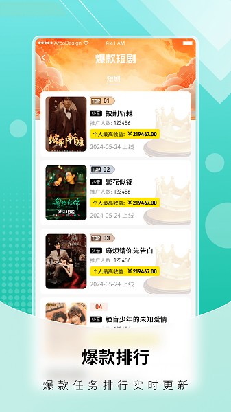 1、无论是才华横溢的短剧创作者还是热衷于分享内容的推广达人,都可以自由的推广众多短剧。