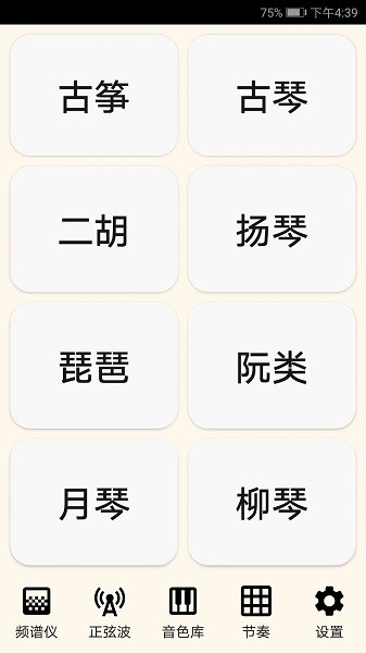 1、首先打开古筝民乐调音器app,点击需要调音的乐器类型。