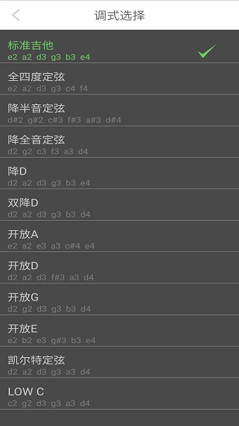 2、支持多种调音模式选择,满足不同风格音乐的需求,无论是标准调弦还是特殊调弦都可以调整。