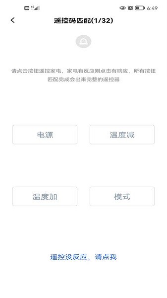 4、匹配加点,将遥控器对准家电点击按钮,四个按钮都要匹配完成。