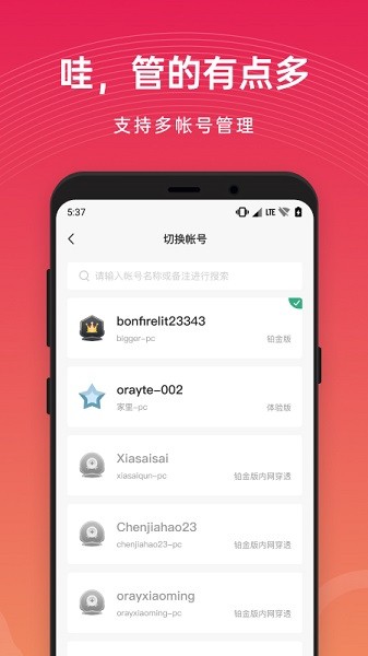 可同时快速管理多达上百个花生壳账号,让网络管理简单便捷。