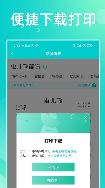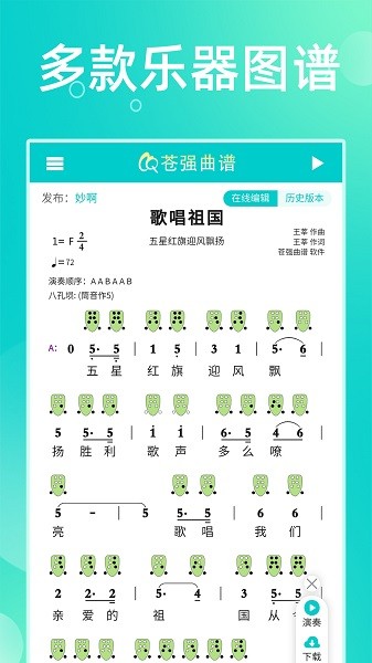 1、集曲谱在线制作与搜索功能于一体的智能电子曲谱应用,为音乐爱好者提供了丰富的曲谱资源。