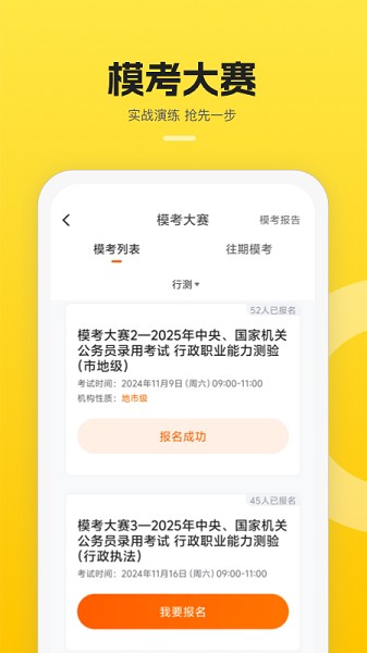 纸上学来终觉浅,绝知此事要躬行。模拟全真考场考试,考前体验考场氛围及考试流程,同时让你过把考官瘾,让你和你的公考小伙伴来一较高下,取长补短,一起上岸!个人专属点评报告等你来拿。