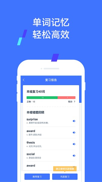 2、丰富的英语单词记忆强化,基于大数据的个性化学习方案,帮助学生高效的备考。