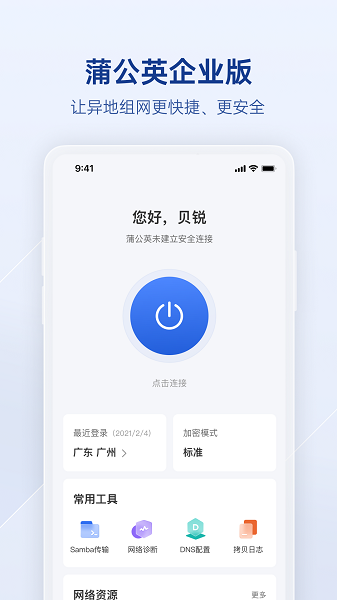 贝锐蒲公英企业版是一款为企业提供智能组网整体解决方案的软件,使用蒲公英企业版可以简单快速搭建各地分公司虚拟局域网,轻松实现私有云盘,异地资源共享,出差在外也可远程访问,及时传送文件。蒲公英企业版采用全新自主研发的联网技术以及全新的VPC (Virtual Private Cloud虚拟私有云)技术,无需公网IP实现穿透内网,为企业带来便利的网络使用体验。