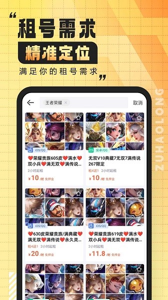 1、为游戏玩家提供安全、便捷的游戏账号租赁服务的平台,涵盖各类热门手游的账号随时进行租赁。