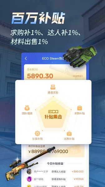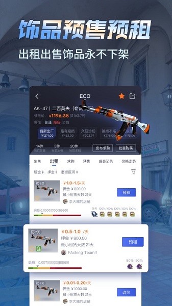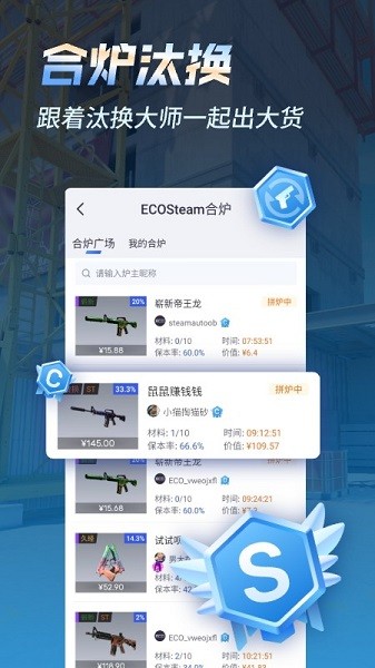 ECOSteam手机app专门为CSGO游戏打造的饰品交易平台,为所有的饰品进行了详细的分类,无论是购买还是租赁都支持的,所有的交易都是非常安全的,让游戏玩家无限制的进行购买以及租赁了,操作流程都是非常的简单。
