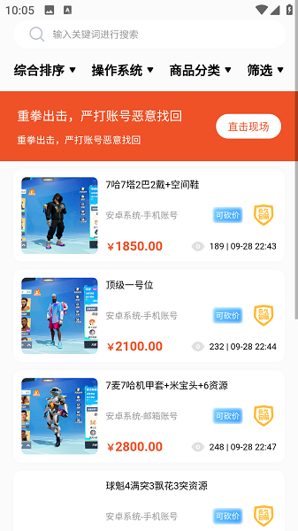2、用户界面友好,操作简便,所有游戏账号商品均以列表形式直观展示,并配有详细的描述信息。