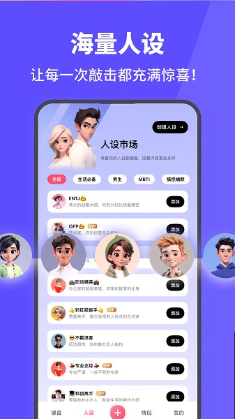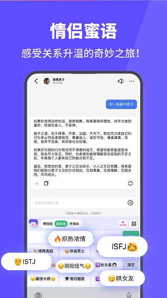 丰富人设任您选!预设多种特色人设,如甜蜜情侣、知心好友、职场达人等,满足您不同人设的交流需求,让交流不再尴尬。