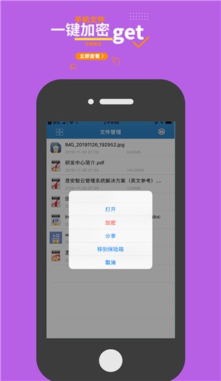 提供文档管理功能。用户可以通过手机对加密文档、图片、视频等进行加密和解密,方便对加密文件的管理。