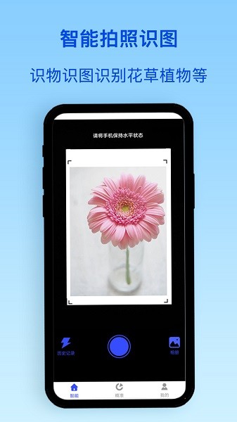 1、利用先进的图像识别技术,打开手机摄像头对准目标物体拍照,即可进行详细的识别。