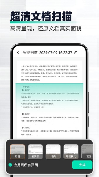 2、利用先进的AI算法,确保每次扫描都能生成高质量的图像,就算复杂的表格或带有水印的文件也能清晰还原。