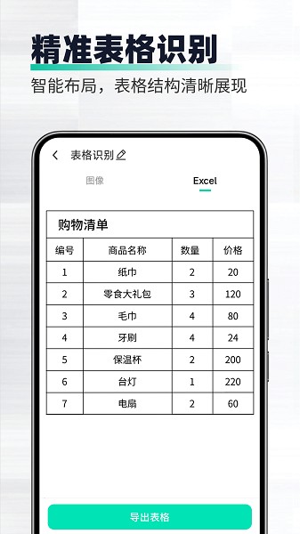 支持表格、表单识别,智能解析表格文字,快速生成Excel表格文件。