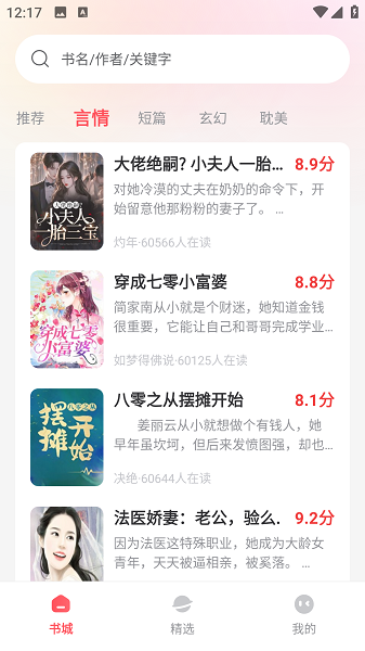 3、“精选”板块,为用户提供了热门小说资源,可以对小说进行评价。