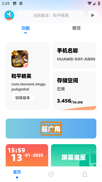 3、进入首页,可以看到广角助手、地铁亮度、屏幕准心等超多功能。