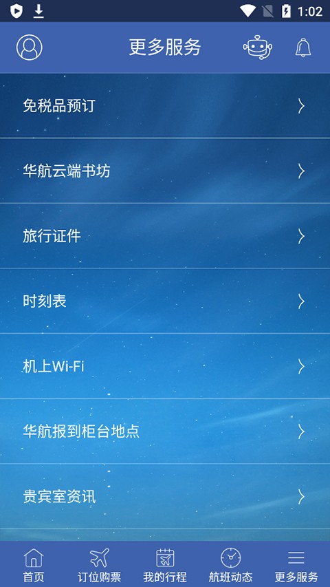 免税品预订、机上无线网络、旅行证件打印、云书店等。