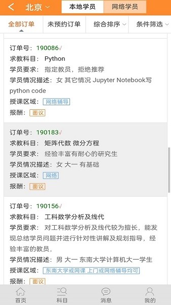 4、点击进入大学生家教,用户可以看到各种优质的家教,用户可以随意选择。
