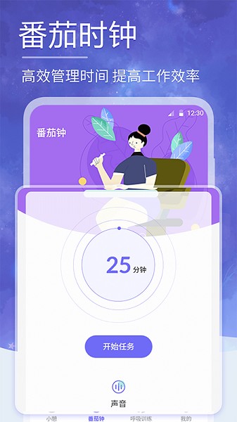 3、提供冥想和专注训练,帮助用户在忙碌的工作和学习中保持清晰的思维和高度的专注力。
