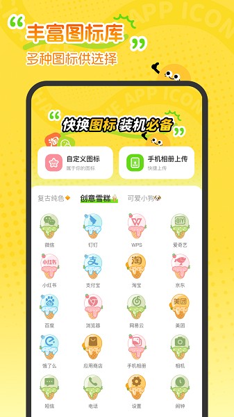 1、从简约风格到华丽设计,从清新自然到时尚炫酷,快换图标涵盖了多种风格的美化资源。