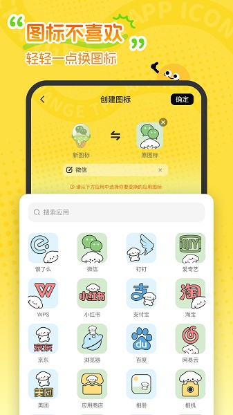 厌倦了千篇一律的应用图标?快换图标让你可以自由更改和自定义手机上应用程序的图标和名称,让你的手机界面焕然一新。