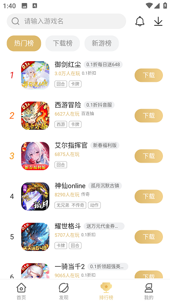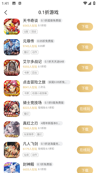 001折手游app为大家带来了多种多样的折扣手游资源,对各种手游进行了非常详细的划分,想怎么进行下载游玩都是支持的。平台上可以领取的福利非常丰富的,各种折扣充值都可以轻松享受的,带来的各种服务也可以享受的。