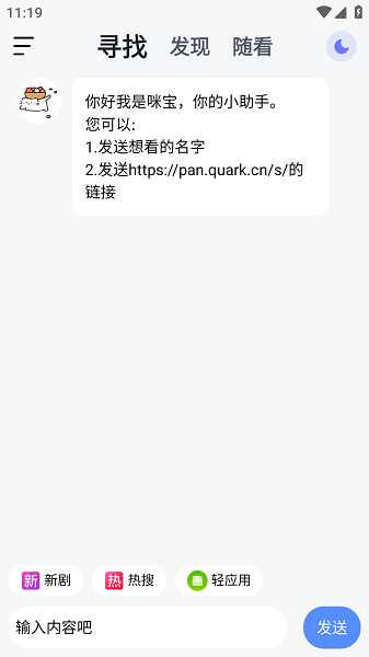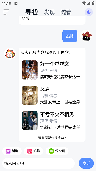 2、进入软件后,软件提供AI搜索短剧功能,用户可以按照需要直接发送想要看的短剧名字。